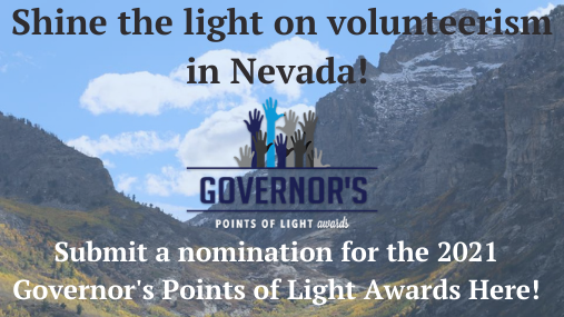 Our team, led by our commissioners, helps organizations throughout the state provide vital services to countless Nevada residents through supporting volunteerism and national service programs including AmeriCorps, providing resources and training such as the Service Enterprise Initiative, and recognizing volunteer service with the Governor’s Points of Light Awards.